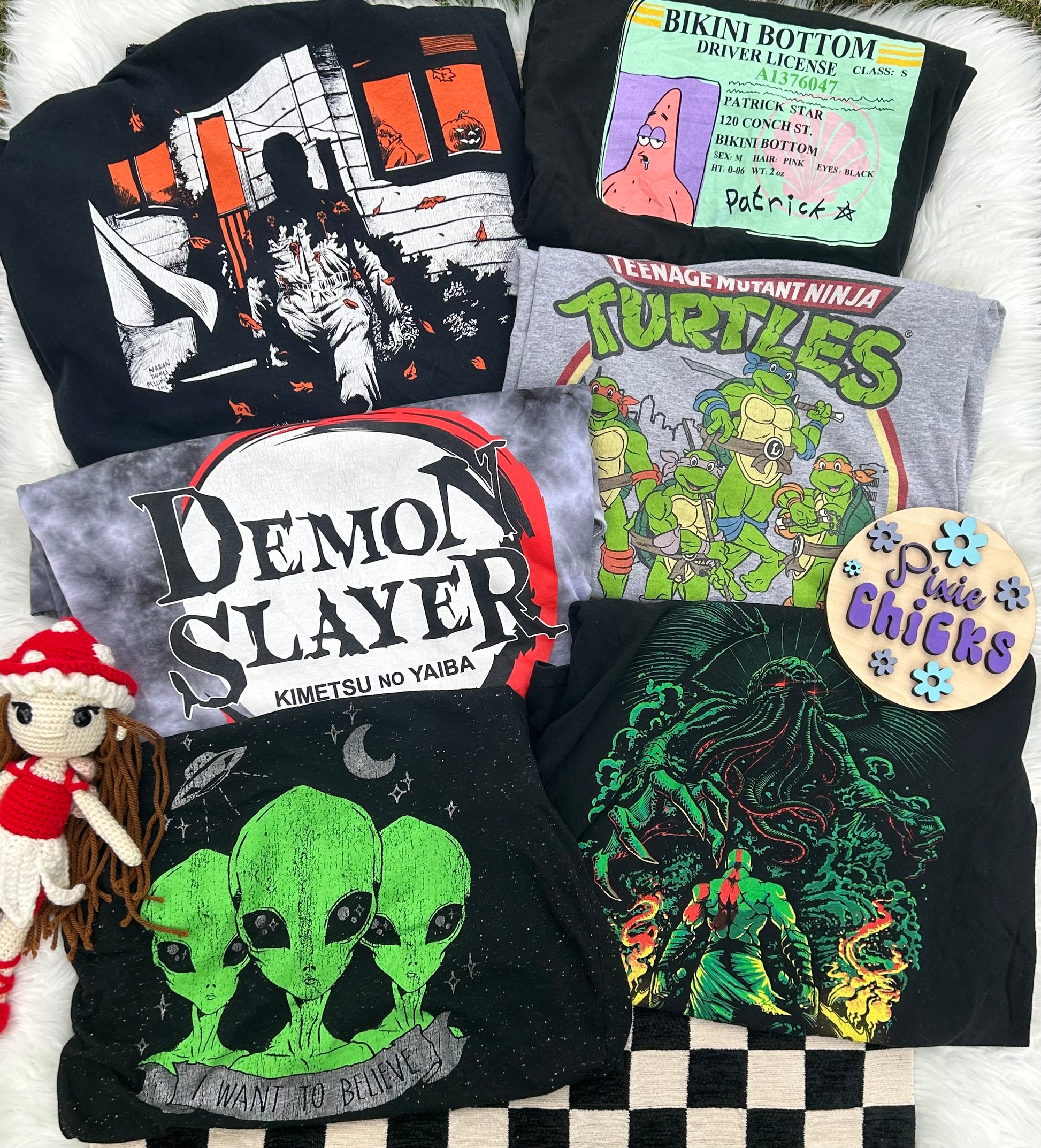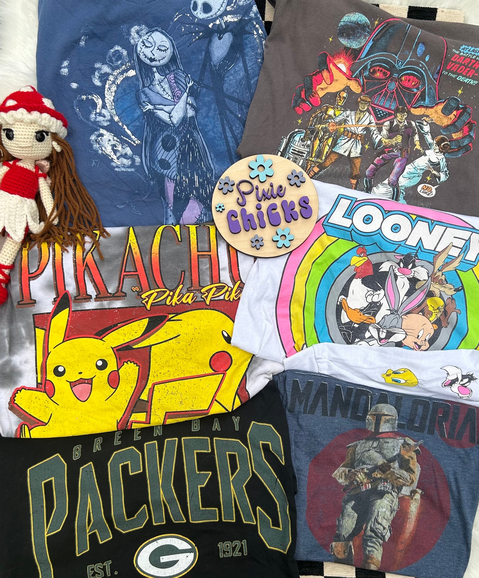 You can send me a tee to use for $10 off. I can also take tee request for an extra $10. Email pixiechicksboutique@gmail.com for more info on custom upcycles!